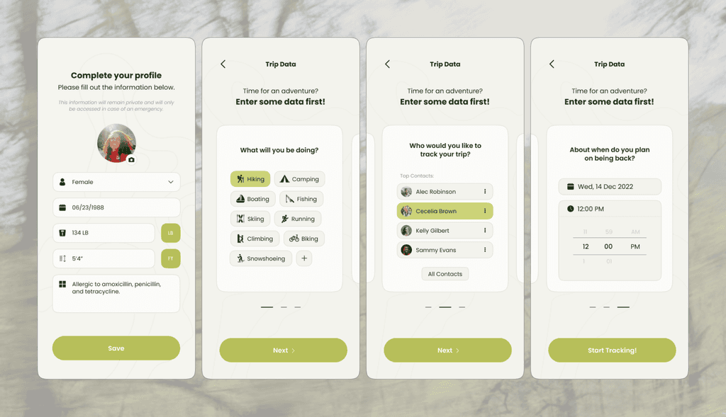 A real-time tracking app concept that provides hikers, runners, and adventurers with live location updates and immediate emergency alerts.